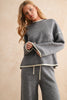 Stay effortlessly cozy with this brushed knit contrast trim sweater, crafted from ultra-soft fabric in a relaxed, slightly boxy silhouette. The subtle off-white edge detailing adds a refined touch to its minimalist design, while the lightweight brushed texture ensures warmth without bulk. Perfect for lounging or layering, this sweater brings a timeless neutral tone to your cold-weather wardrobe. Matching pants sold separately.