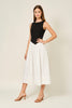 This elegant two-tone sleeveless midi dress blends modern design with timeless sophistication. Featuring a sleek fitted bodice and a softly gathered skirt, this dress creates a flattering silhouette that moves beautifully with every step. The asymmetrical waist seam adds a unique design touch, making it stand out from classic midi dresses.