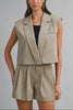 Chic Sleeveless Blazer Vest with Pleated Shorts Set