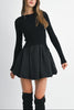 - Design: Long-sleeve ribbed sweater with a bubble hem mini skirt