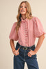Striped Ruffle Front Puff Sleeve Top