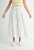 White Tiered Midi Skirt with Elastic Waist & Lace Hem